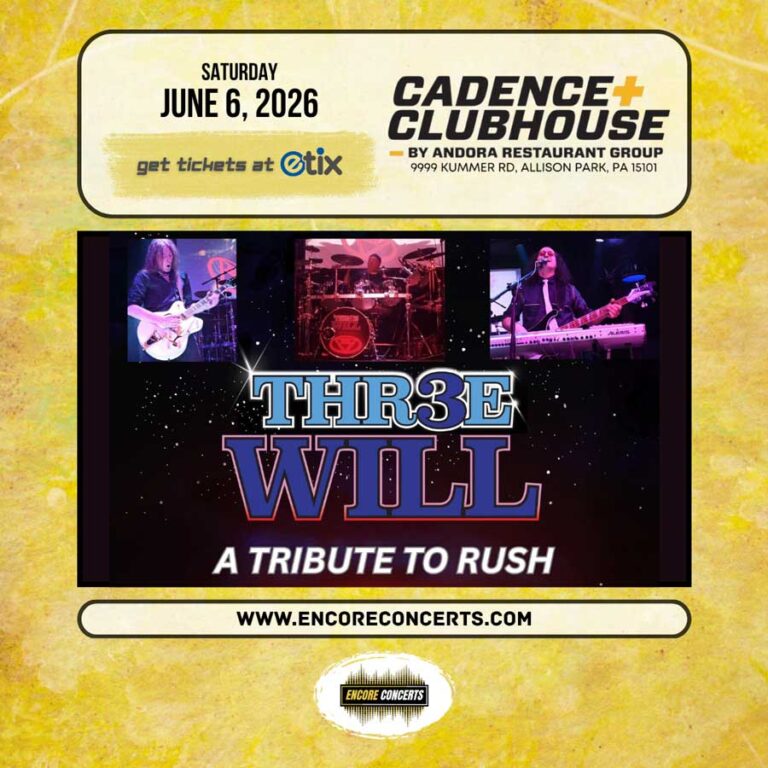 TIMES: Entry Time: 6:00 PM / Show Time: 7:00 PM DESCRIPTION: Cadence Clubhouse and Encore Concerts proudly present THR3EWILL – A Tribute to Rush – live in concert on Saturday, June 6, 2026. Event entry begins at 6:00 PM and the show starts at 7:00 PM. Advance tickets are available now at Etix.com or via…