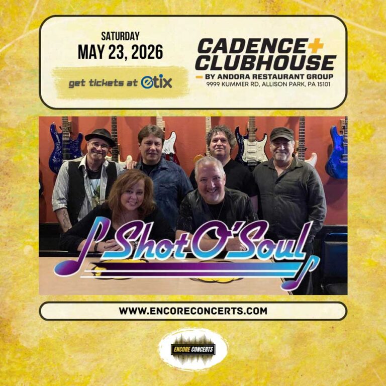 TIMES: Entry Time: 6:00 PM / Show Time: 7:00 PM DESCRIPTION: Cadence Clubhouse and Encore Concerts proudly present Shot O’ Soul – playing Classic Rock with a touch of Soul – live in concert on Saturday, May 23, 2026. Event entry begins at 6:00 PM and the show starts at 7:00 PM. Advance tickets are…