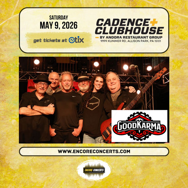 TIMES: Entry Time: 6:00 PM / Show Time: 7:00 PM DESCRIPTION: Cadence Clubhouse and Encore Concerts proudly present Good Karma Band – performing all your Classic Rock & Blues favorites – live in concert on Saturday, May 9, 2026. Event entry begins at 6:00 PM and the show starts at 7:00 PM. Advance tickets are…