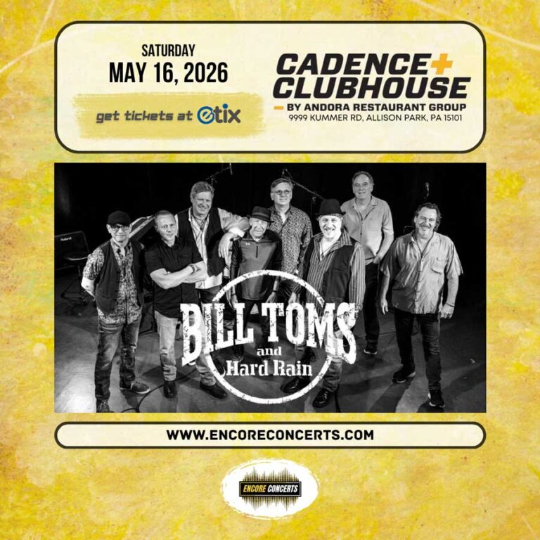 TIMES: Entry Time: 6:00 PM / Show Time: 7:00 PM DESCRIPTION: Cadence Clubhouse and Encore Concerts proudly present Bill Toms & Hard Rain – Americana Rock & Soul – live in concert on Saturday, May 16, 2026. Event entry begins at 6:00 PM and the show starts at 7:00 PM. Advance tickets are available now…